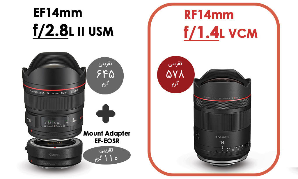 ۲. لنز RF14mm f/1.4L VCM چگونه با EF14mm f/2.8L II USM مقایسه میشود؟