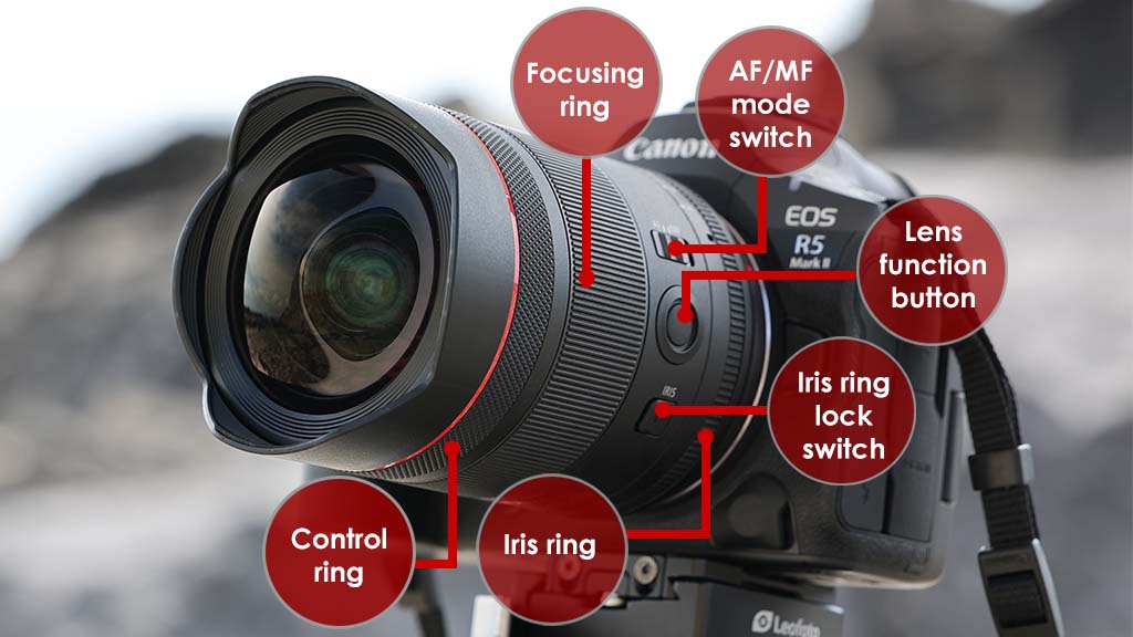 حلقه دیافراگم را میتوان در زمان عدم استفاده قفل کرد تا از تغییرات ناخواسته جلوگیری شود. در دوربینهایی مانند EOS R5 Mark II و EOS R6 Mark III، میتوانید از آن برای تنظیم دیافراگم در هنگام عکاسی نیز استفاده کنید.