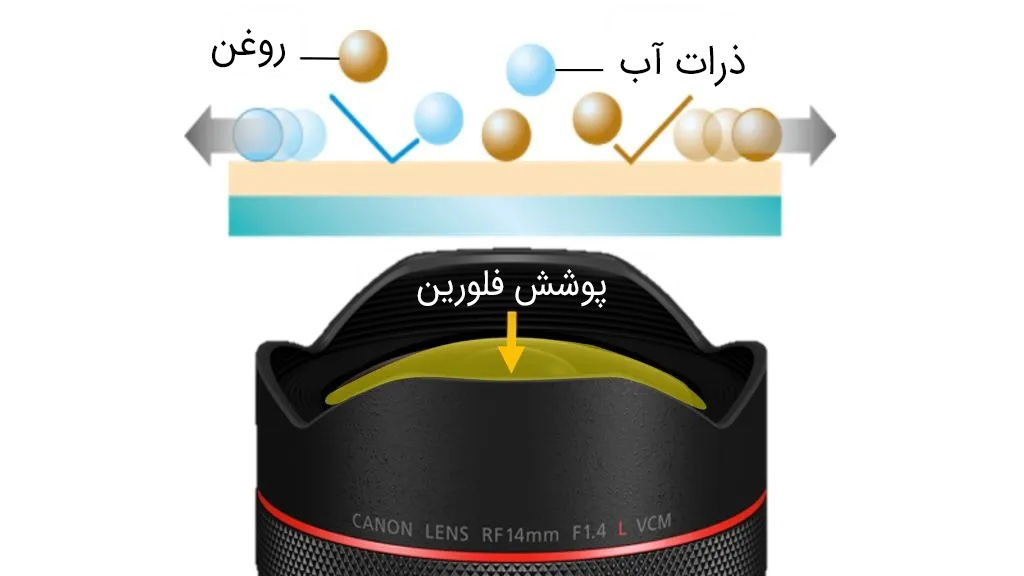 پوشش فلوئورین مقاوم در برابر لکه بر روی عنصر جلویی لنز، از چسبیدن گرد و غبار و کثیفی به لنز جلوگیری کرده و پاک کردن آنها را با یک دستمال تمیز آسان میسازد.