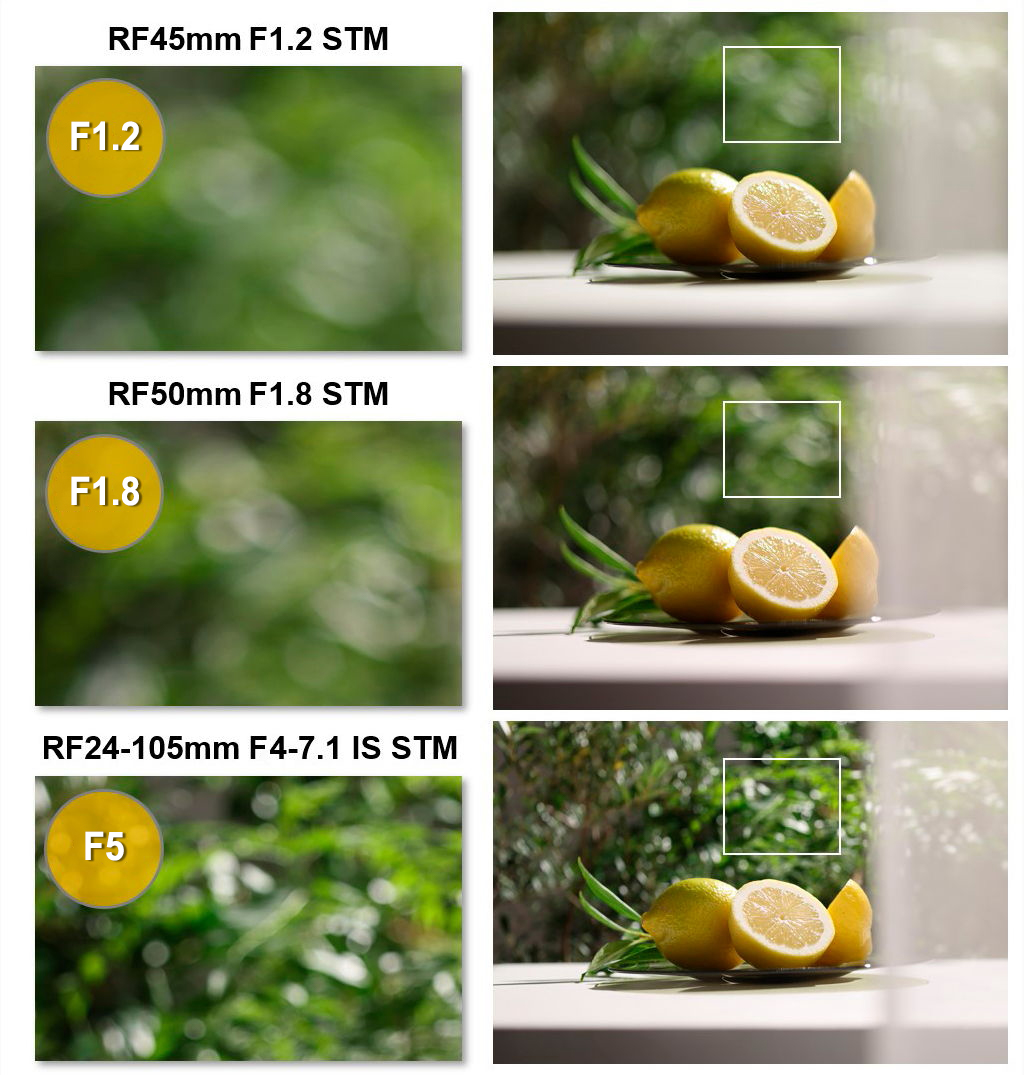 پیش از این، بزرگترین دیافراگمها فقط در لنزهای سری L مانند RF50mm F1.2L USM موجود بودند که برای استفاده حرفهای با ساختار مقاوم در برابر گرد و غبار و چکه و عملکرد نوری برتر طراحی شده بودند و قیمتی مناسب داشتند. RF45mm F1.2 STM یک لنز پرایم سریع جدید را برای کاربران با بودجه محدودتر اضافه میکند و مزایای F1.2 را با بهترین تعادل قیمت و عملکرد ارائه میدهد. این لنز در مقایسه با RF50mm F1.8 STM که هفت تیغه دیافراگم دارد، دارای نه تیغه دیافراگم است که حتی در حالت بسته نیز بوکههای گردتر و جذابتری را ممکن میسازد.