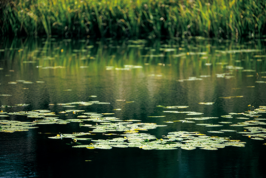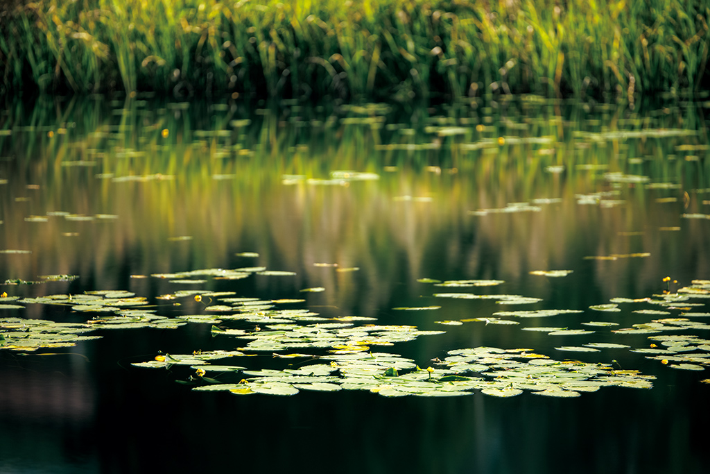 برای عکاسی از انعکاسها همیشه لازم نیست از دیافراگم بسته استفاده کنید. در اینجا، عمق میدان کم F2.8، نیزارهای پسزمینه را از فوکوس خارج میکند و خطوط بین پیشزمینه و پسزمینه را برای ایجاد یک جلوه انتزاعی محو میکند. از زوم لنز برای آزمایش روشهای مختلف کادربندی استفاده کنید. فاصله کانونی کوتاهتر میتواند باعث شود عکس پویاتر به نظر برسد؛ فاصله کانونی بیشتر توجه بیشتری را به جزئیات جلب میکند.