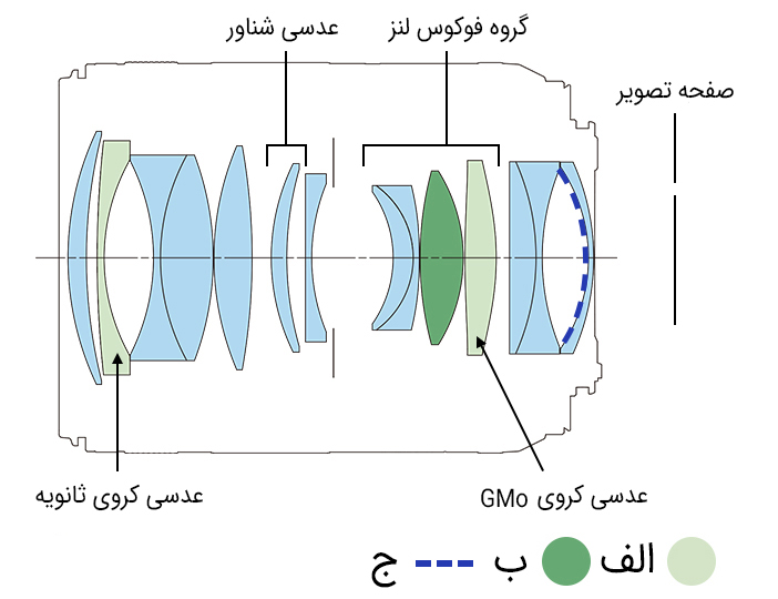 ساختار لنز: ۱۴ المان در ۱۱ گروه